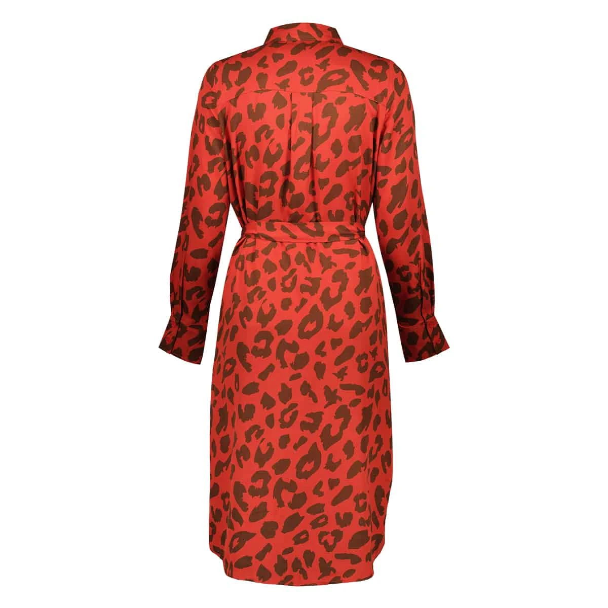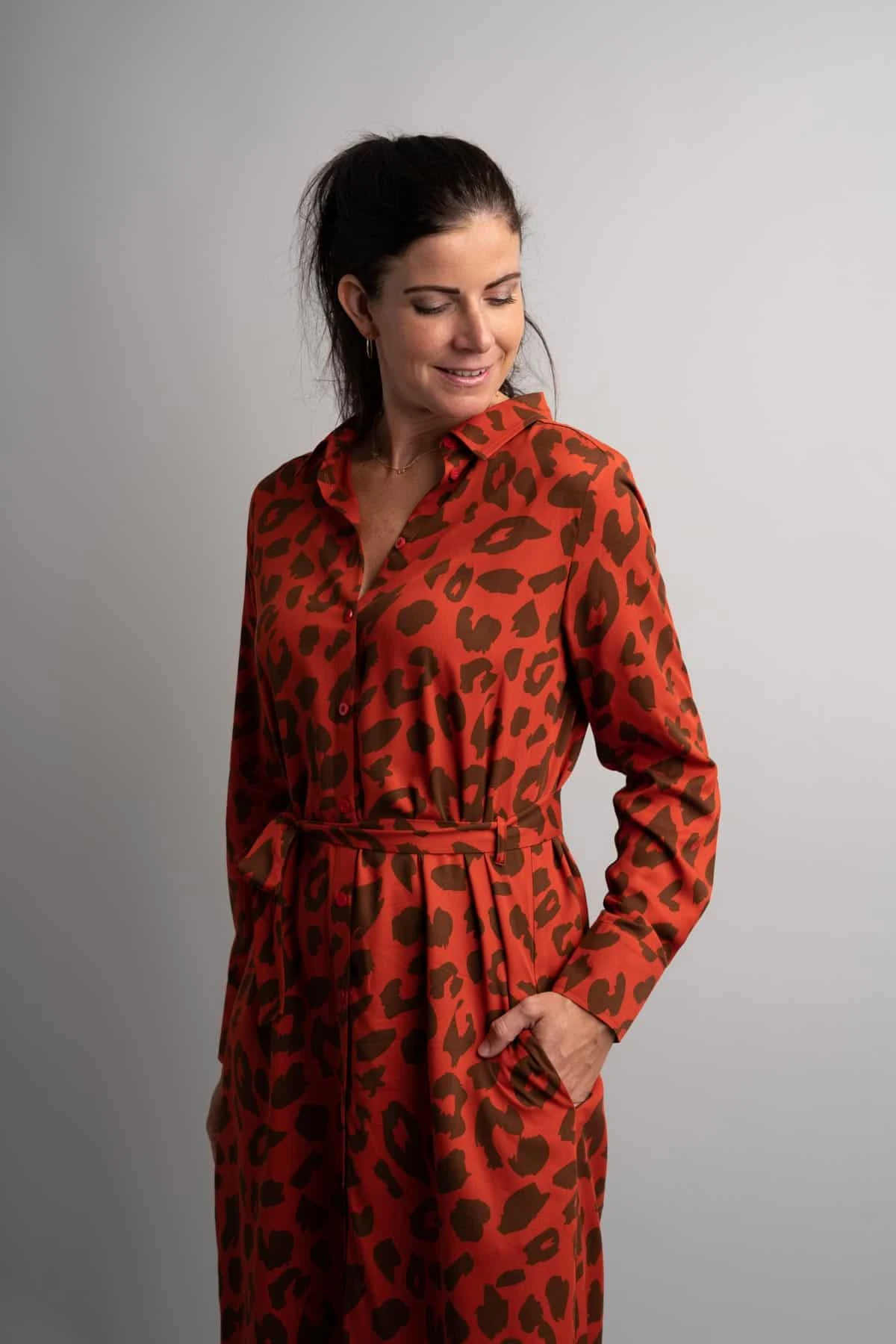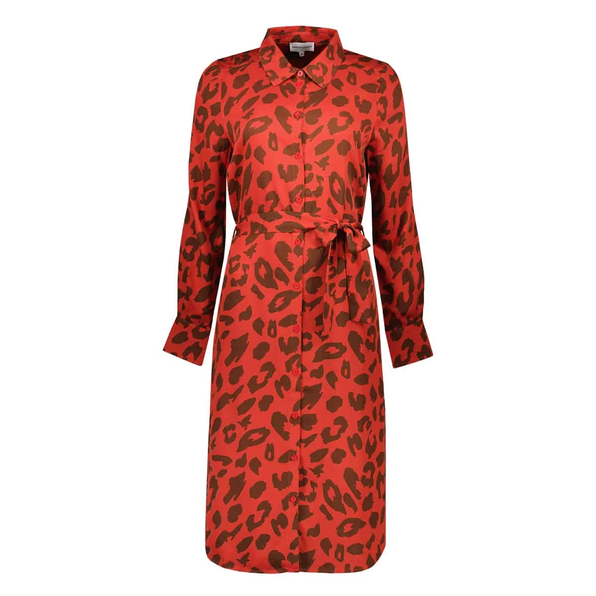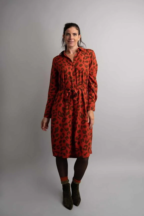 – Red dress with brown leopard print