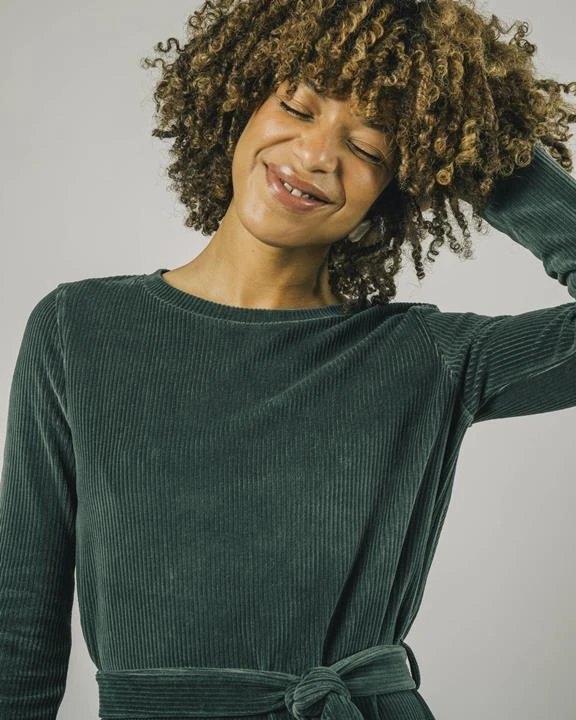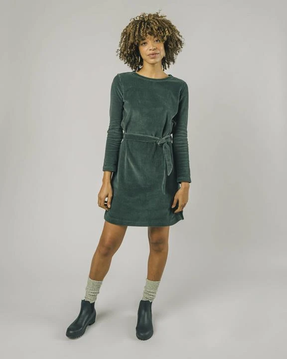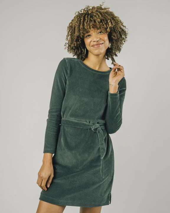 A dress made for heaven. This comfortable yet elegant corduroy dress in deep forest green is a real all-rounder that you can wear both to work and when going out.