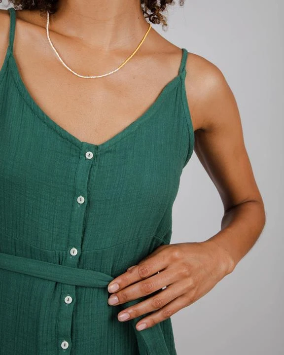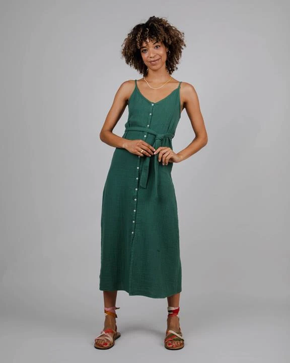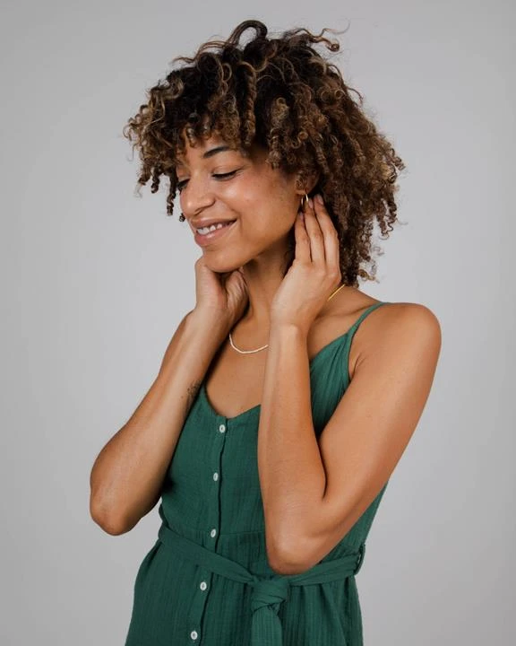 Long strap dress, buttoned, comes with a belt. The soft and light fabric makes it a perfect item for warm summer days. Ethically made of organic cotton.