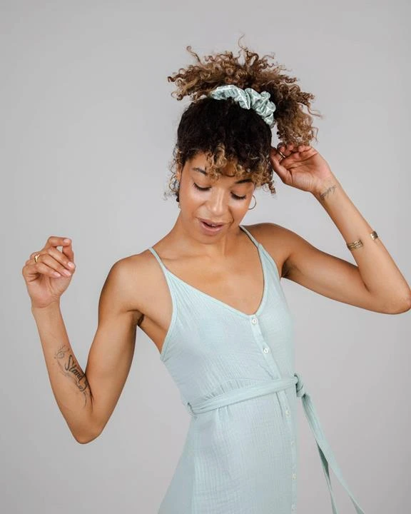 Long strap dress, buttoned, comes with a belt. The soft and light fabric makes it a perfect item for warm summer days. Ethically made of organic cotton.