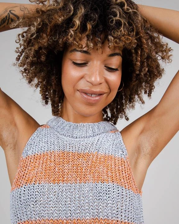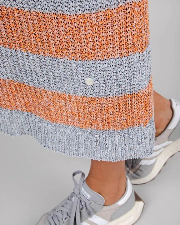Long, knitted strap dress with leg slit on the side. Very comfy fit and fabric. Ethically made of organic cotton mix.