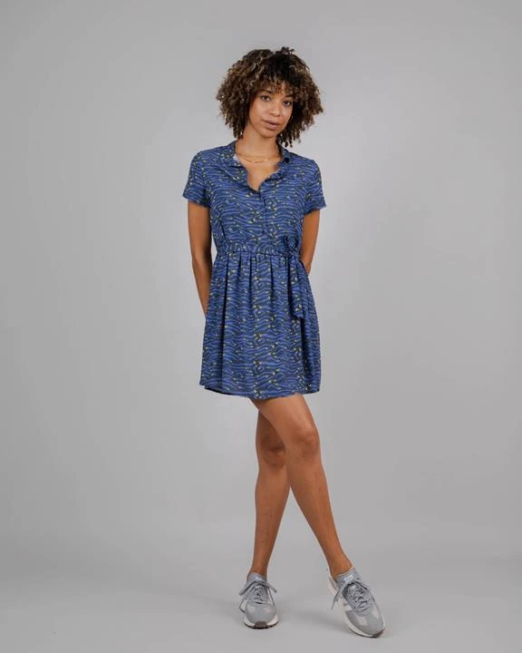 Printed midi dress made from very light and soft fabrics which makes it a perfect item for warm summer days. Short sleeved, buttoned, comes with a belt. Ethically made of sustainable viscose.