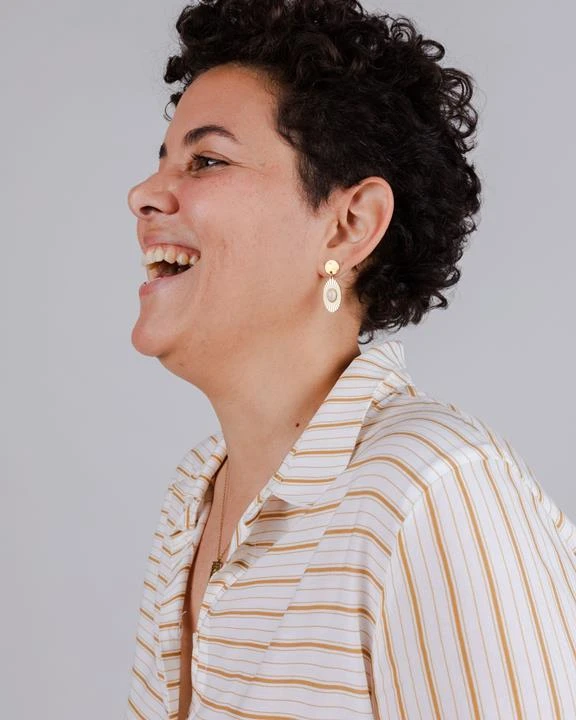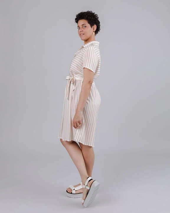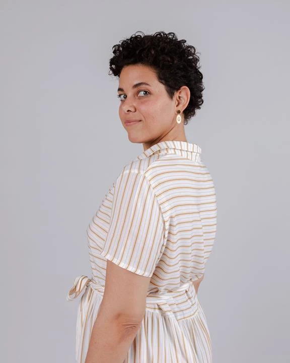 Stripped midi dress made from a very soft and light material, perfect for warm summer days. Short sleeved, buttoned and comes with a belt. Ethically made of sustainable viscose.