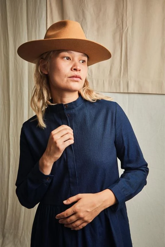 If L’Envers was a dress, it would be a CATHERINE. Refined with its collar, delicate hidden buttonhole and natural waist, the simplicity of its line makes it an easy piece to wear again and again. Slip it on with boots and a cardigan, hands in pockets, and you’re done!