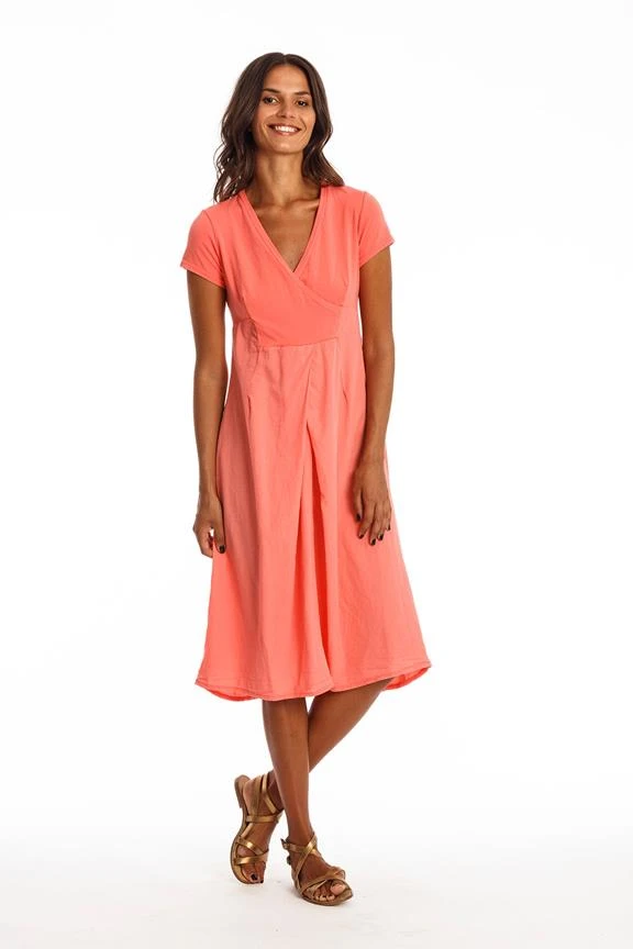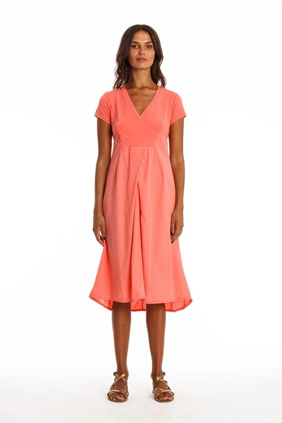 V neck dress with short sleeves.