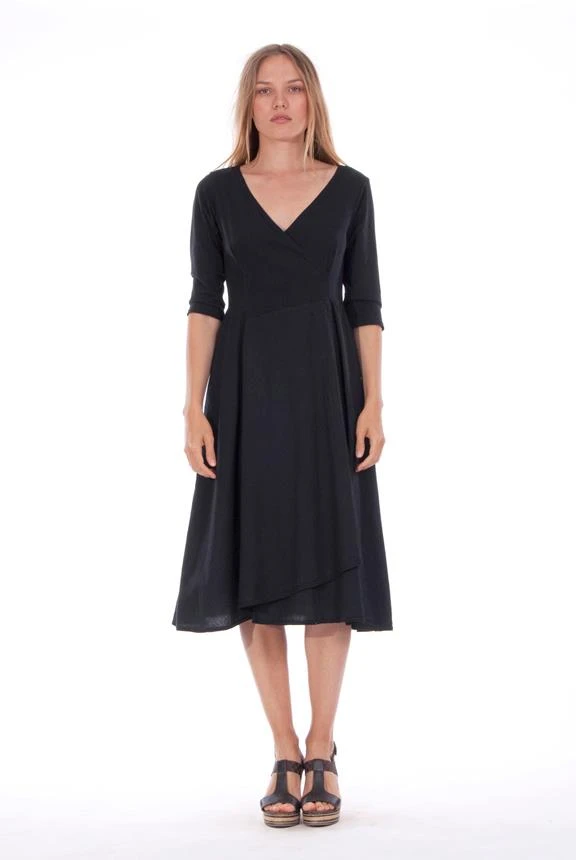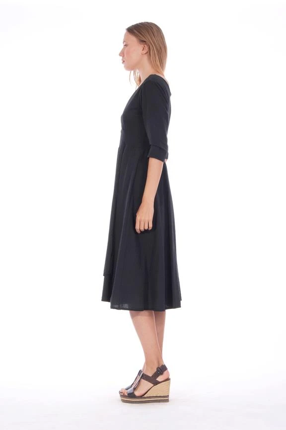 - V neck dress with 3/4 sleeves.