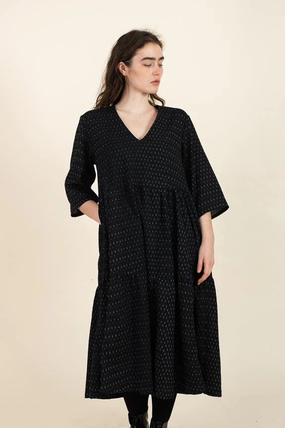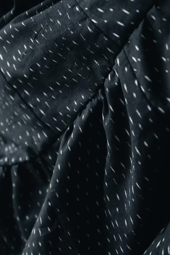 - COLOR: Drops (Ikat weave: black base fabric with beige-white pattern)