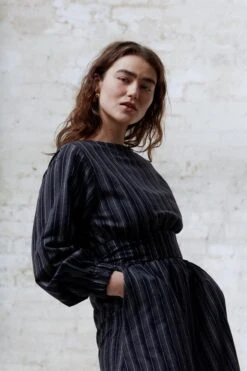MATERIAL BEHAVIOR: We do not use any elasthan (plastic) in our fabrics and work with traditionally woven goods, thus the material does not have any elasticity.