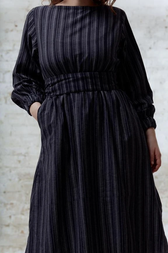 Dress Kamyaki is super comfortable and elegant at the same time. Its broad elastics in the waist and at the arms create a great form. If you wear it with its broad cotton belt it looks even more elegant. As all our garments we made sure it has spacious pockets. Due to its amazing handwoven ikat-fabric every piece is unique.
