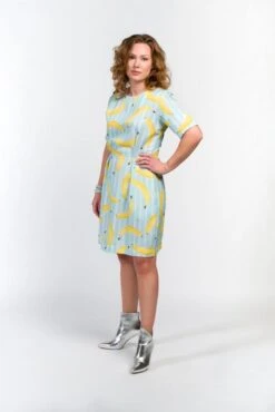 The shiftdress me is a stylish and timeless dress, inspired by the 60s. The dress is slightly fitted, which creates an elegant silhouette. The subtle pleats give the shift dress a comfortable fit and plenty of freedom of movement. It can be combined with sneakers or sandals for a casual look or go for chic & classy with a nice heel.