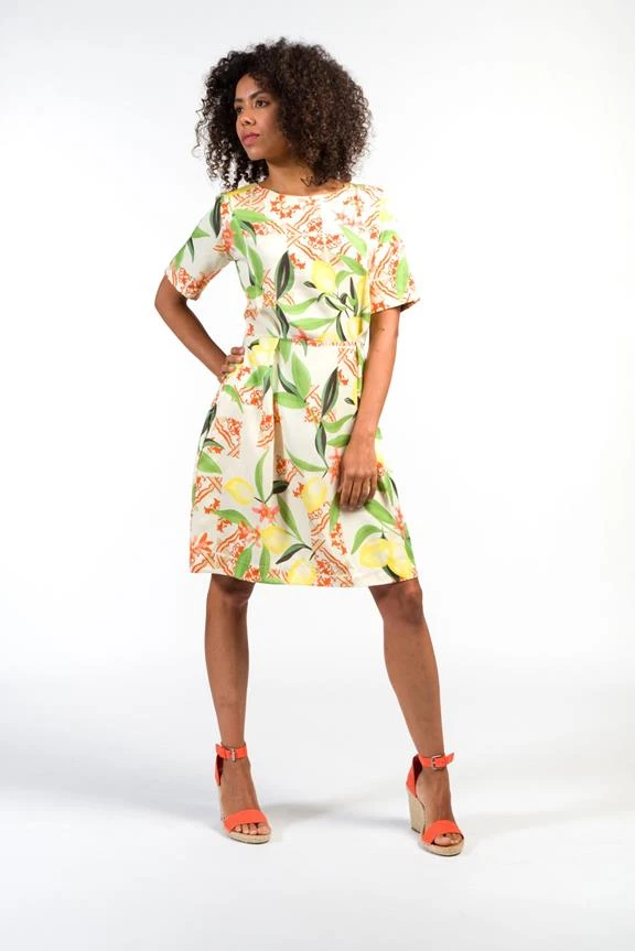 The shiftdress me is a stylish and timeless dress, inspired by the 60s. The dress is slightly fitted, which creates an elegant silhouette. The subtle pleats give the shift dress a comfortable fit and plenty of freedom of movement. It can be combined with sneakers or sandals for a casual look or go for chic & classy with a nice heel.