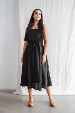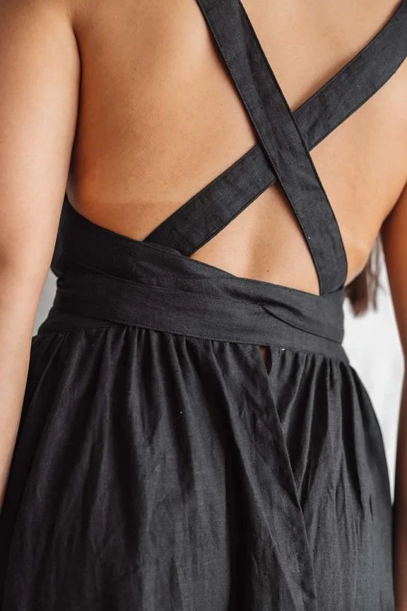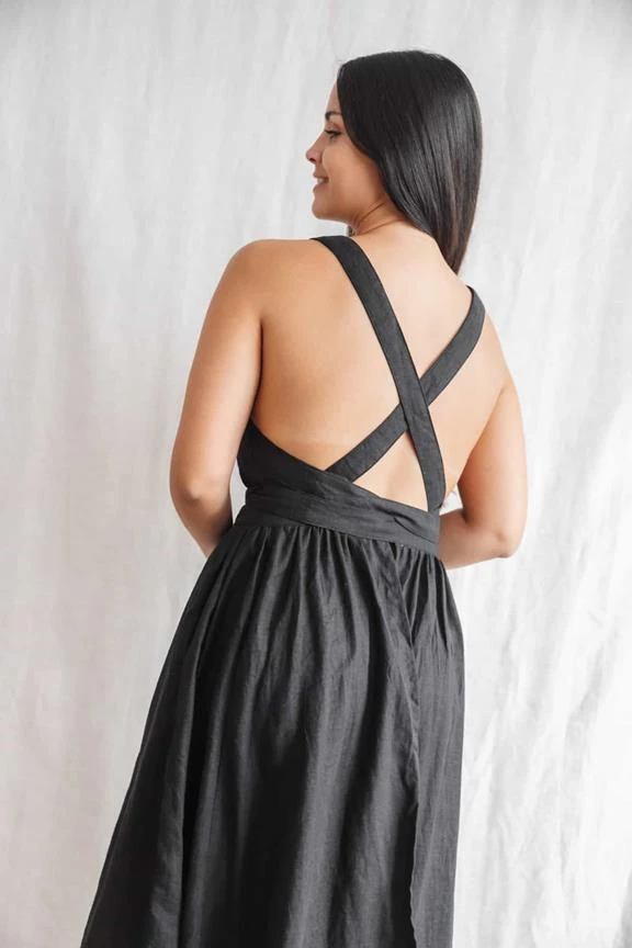 Dress Padmini is a wonderful wrapping dress with highlighted back. Playful ruffles adorn the waist whereas the back is elegantly designed with crossing bands which can be adjusted in length. This dress can become your favourite piece! The soft hemp-tencel fabric hugs your body and feels very light and pleasant.