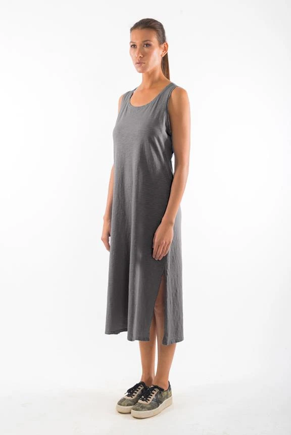 - Sleeveless round neck dress.