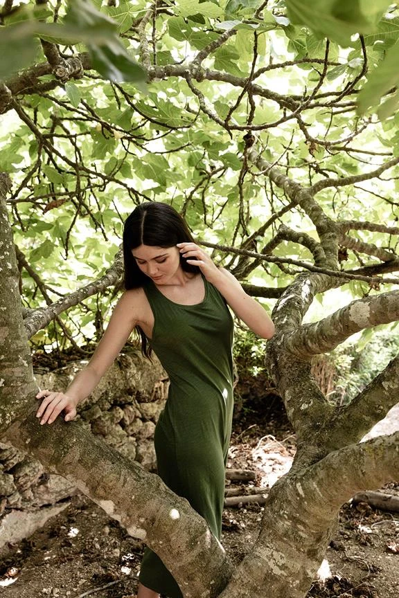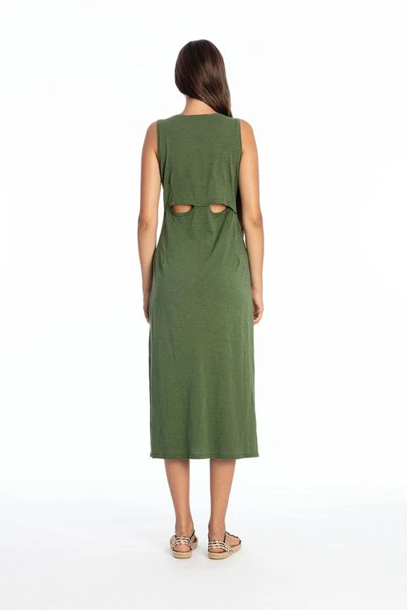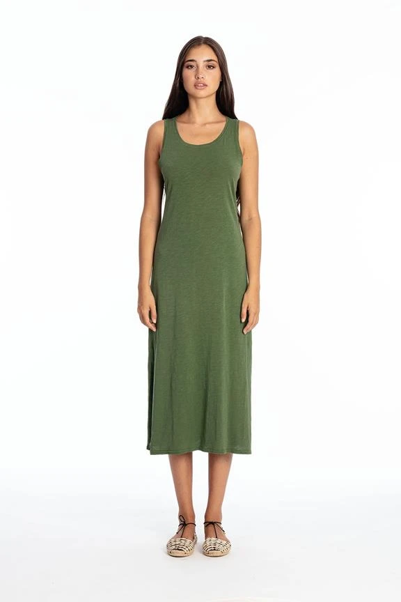 - Sleeveless round neck dress.