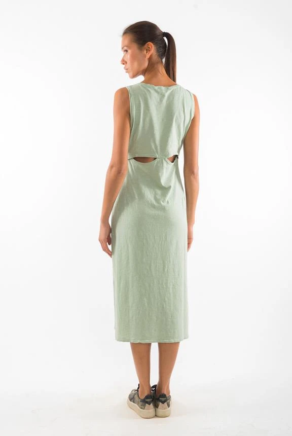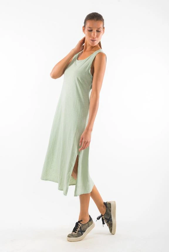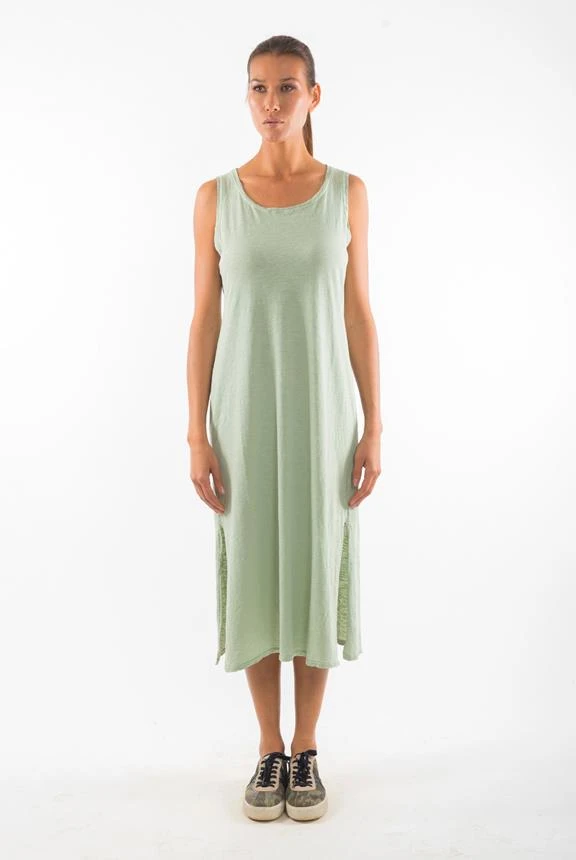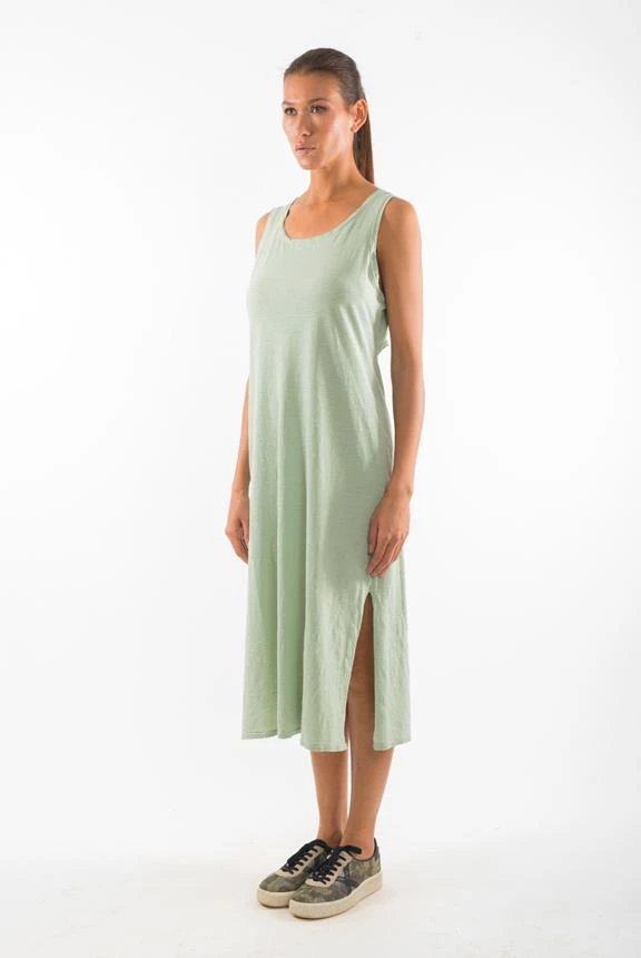 - Sleeveless round neck dress.