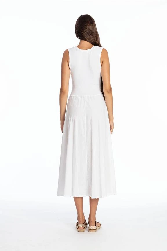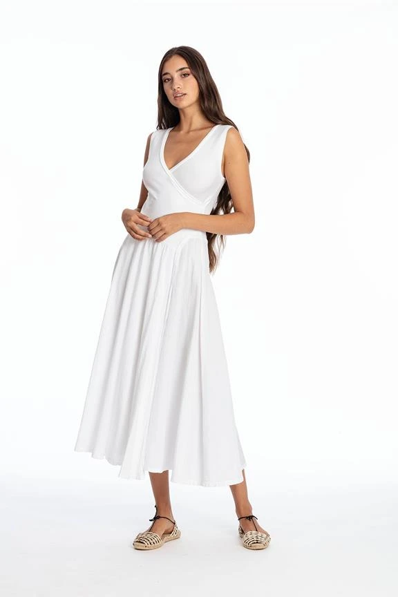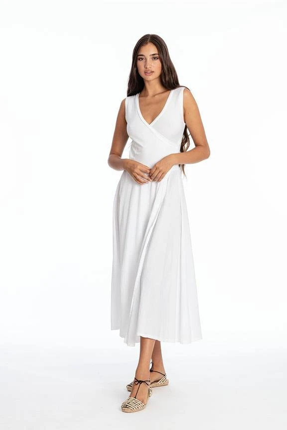 Long sleeveless dress with V neck.