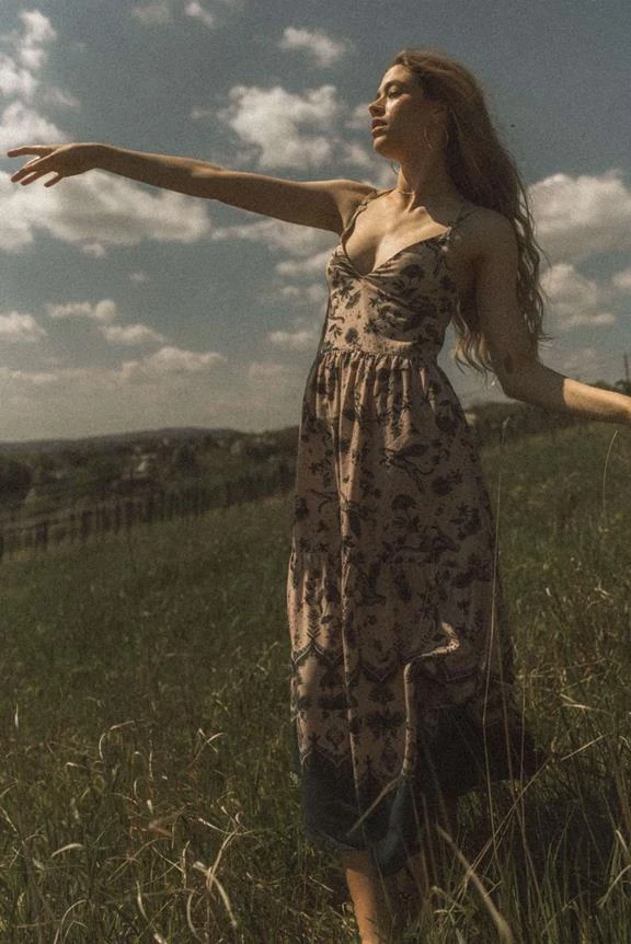 A gorgeous summer dress in midi length. Featuring ruffles, a V-neckline and crossback detail. Made of soft 100% LENZING™ ECOVERO™ viscose fibers. The straps can be adjusted – so you can adjust the length and depth of the neckline individually to you and your taste.