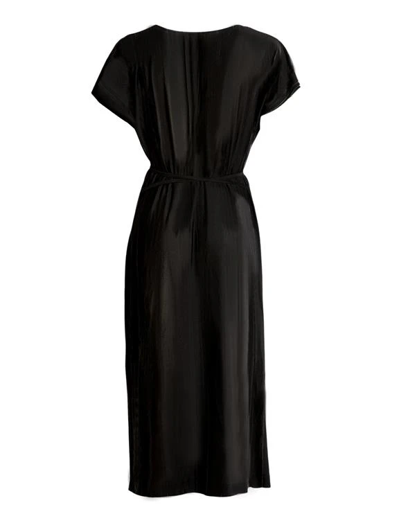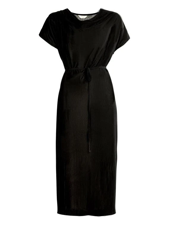 Relaxed dress in organic cotton with a beautifully draped neckline. Drawstrings attached to both side seams, the strings allow you to adjust the tightness of the waist. Split in the left side seam.