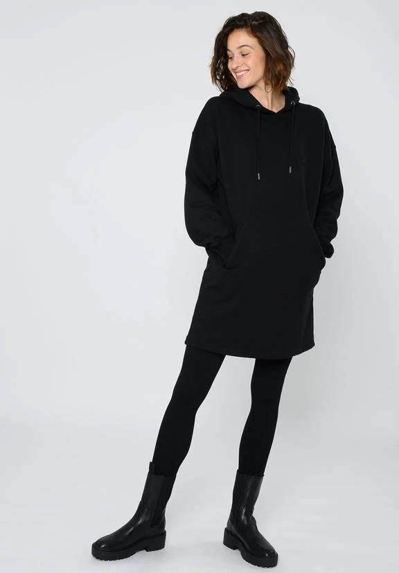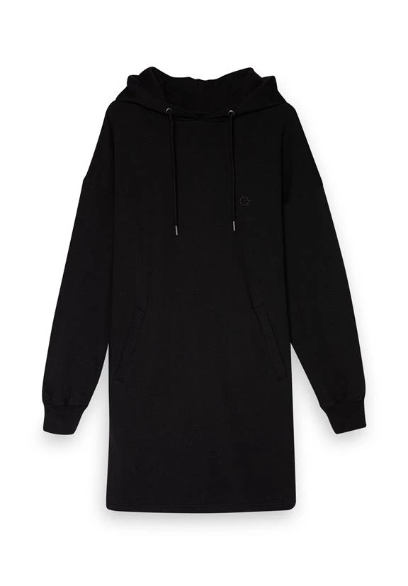 Hoodie dress with casual fit, elastic cuffs, slip pockets and small matching color ThokkThokk embroidery logo.
