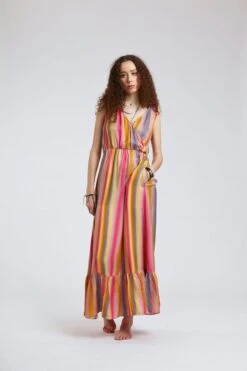 Add chic and style to your summer wardrobe with our WHIRLYGIG Dress. This gorgeous full-length maxi dress features a draped front wrap detail with a flattering low cut neckline and a frill hem finish to ensure effortless style and sophistication this summer!