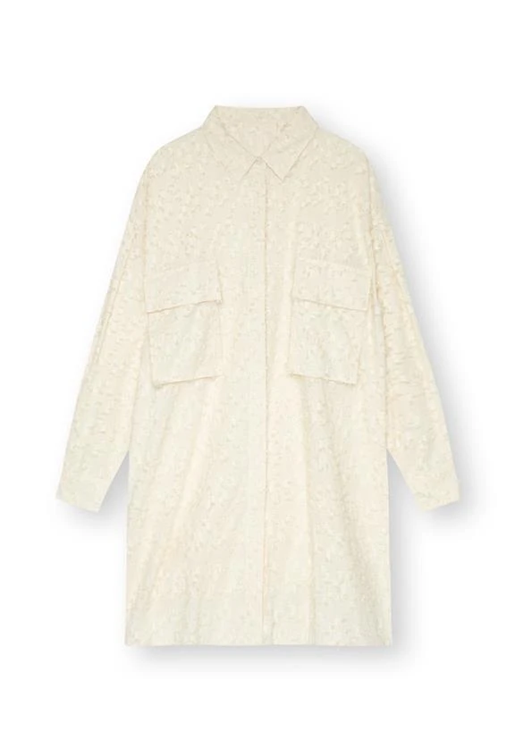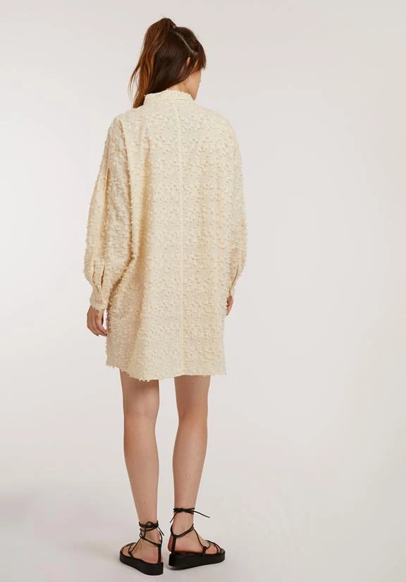 Long sleeve oversized shirt dress made of 100% certified organic cotton with concealed button placket and two chest pockets in trendy fringe style.