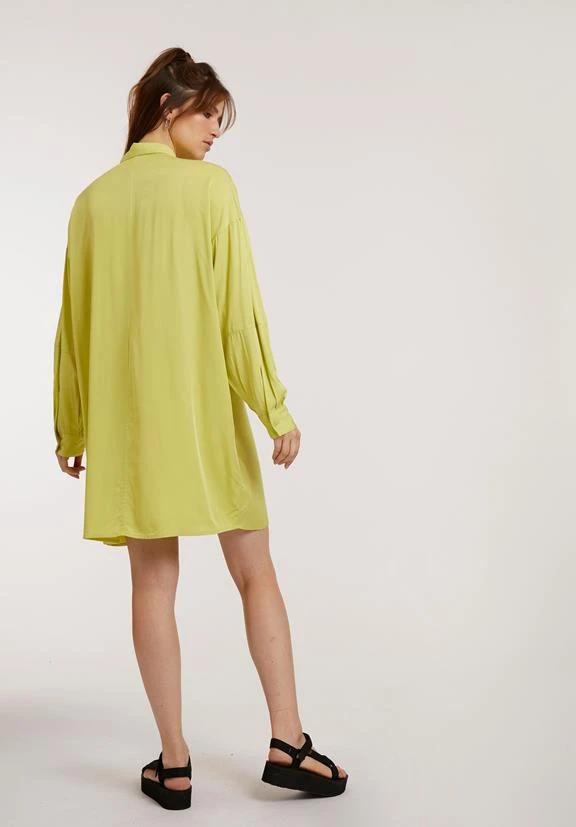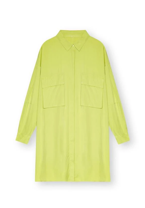 Soft flowing, oversized longsleeve dress made from certified LENZING™ ECOVERO™ viscose with a covered front placket and two chest patch pockets.