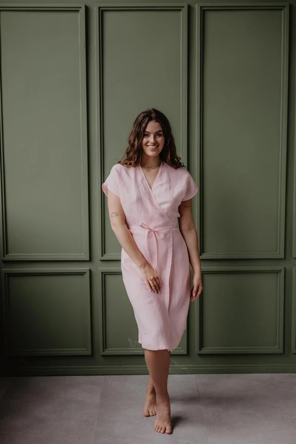 Classy and cute linen wrap dress OLIVIA. Envelope yourself into this beauty (easy and effortless closure with a linen belt). Perfect for every occasion! Wear it for a picnic, a special occasion, the beach or a date!