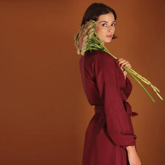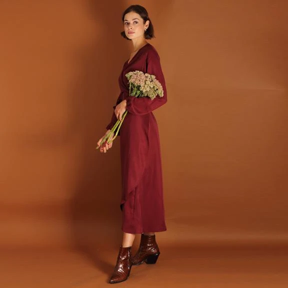 Long-sleeved maxi wrap dress made of tencel