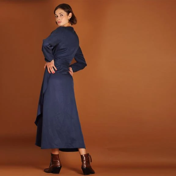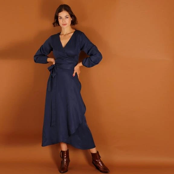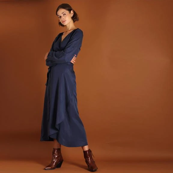 Long-sleeved maxi wrap dress made of tencel